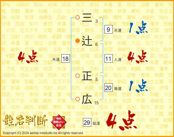 三辻正広さんの総運は29画の4点!