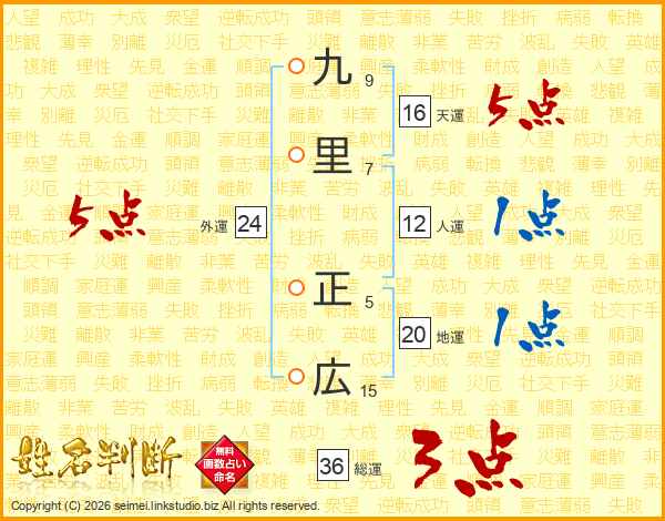 九里正広さんの総運は36画の3点!