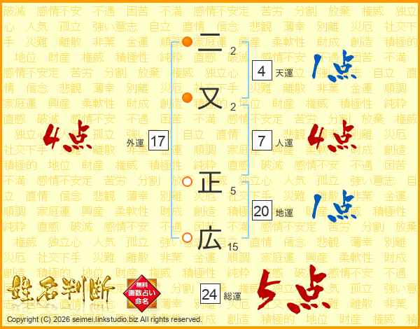 二又正広さんの総運は24画の5点!