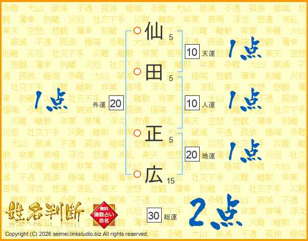 仙田正広さんの総運は30画の2点!