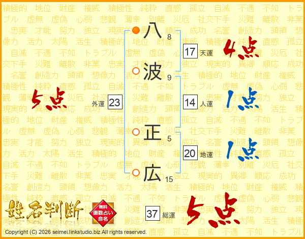 八波正広さんの総運は37画の5点!