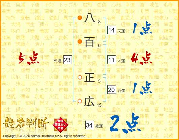 八百正広さんの天運は14画の1点!