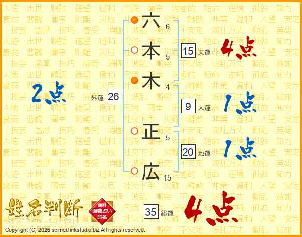六本木正広さんの総運は35画の4点!