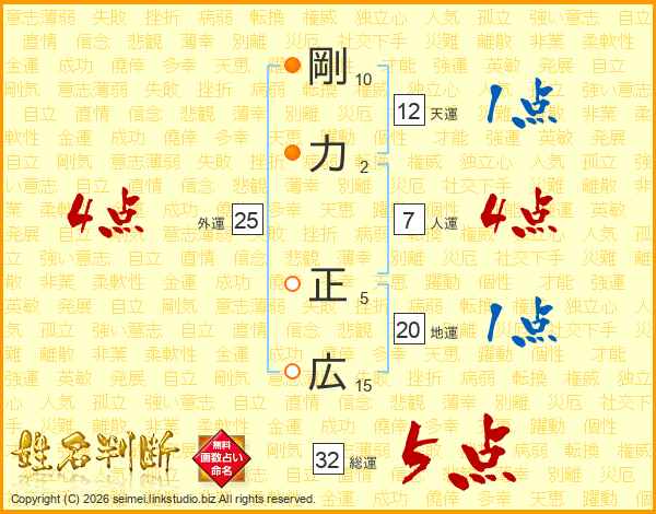 剛力正広さんの総運は32画の5点!