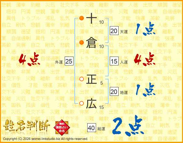 十倉正広さんの総運は40画の2点!