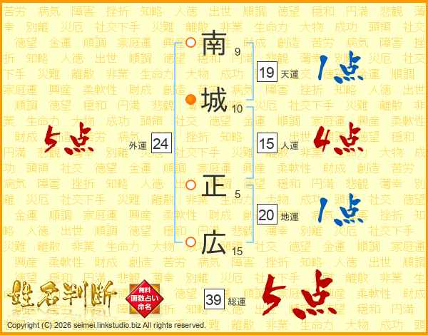 南城正広さんの総運は39画の5点!