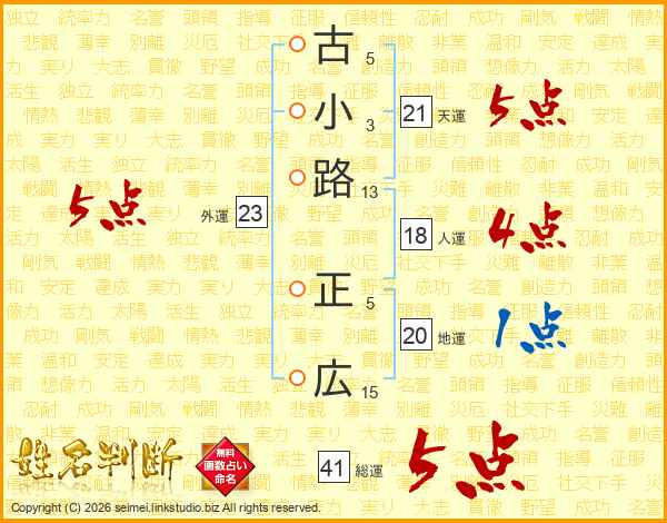 古(5画)小(3画)路(13画) 正(5画)広(15画)