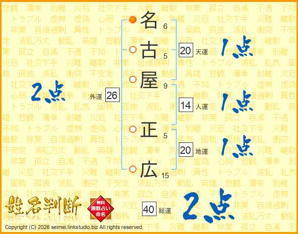 名古屋正広さんの総運は40画の2点!
