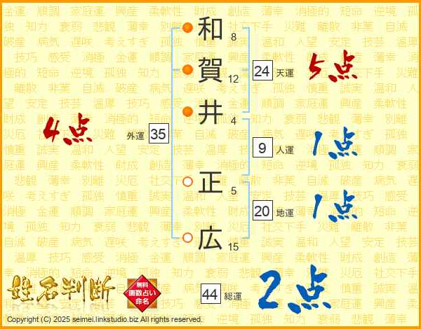 和(8画)賀(12画)井(4画) 正(5画)広(15画)