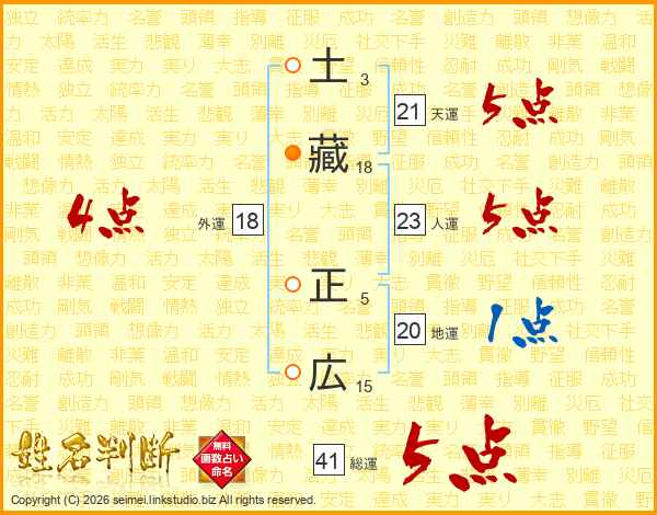土藏正広さんの総運は41画の5点!