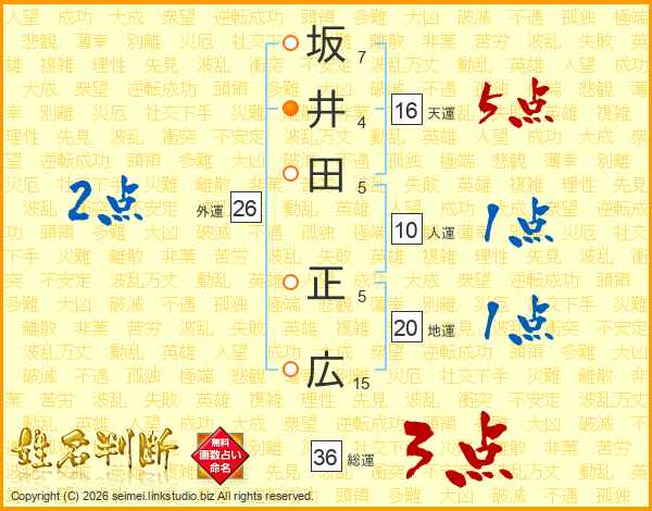 坂井田正広さんの天運は16画の5点!
