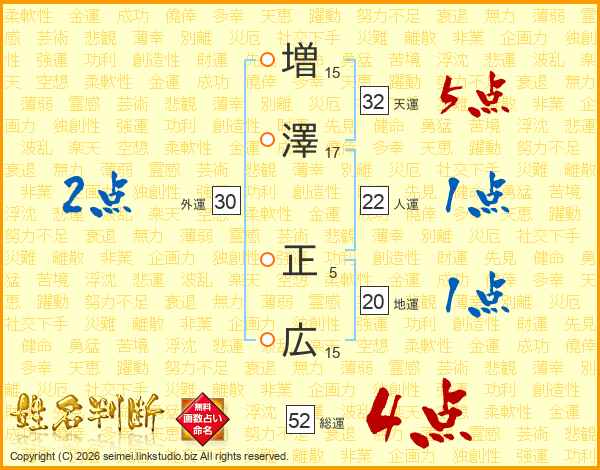 増澤正広さんの総運は52画の4点!