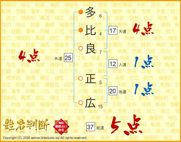 多比良正広さんの総運は37画の5点!