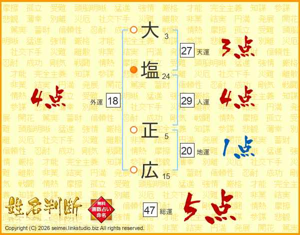 大塩正広さんの総運は47画の5点!