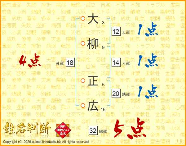 大柳正広さんの総運は32画の5点!