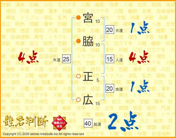 宮脇正広さんの総運は40画の2点!