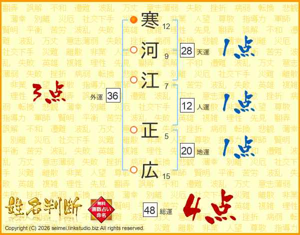 寒河江正広さんの総運は48画の4点!