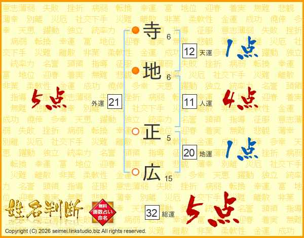 寺地正広さんの総運は32画の5点!