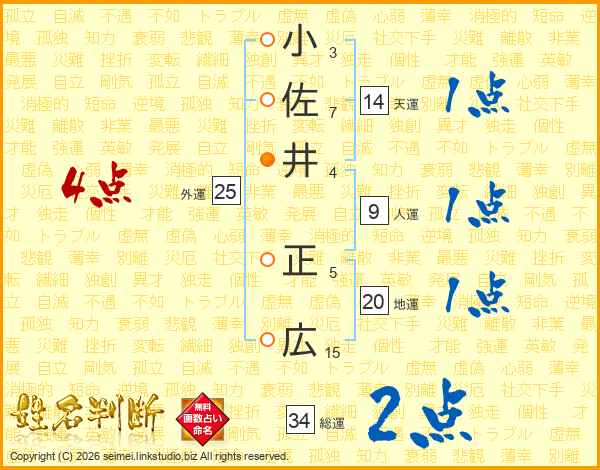 小(3画)佐(7画)井(4画) 正(5画)広(15画)
