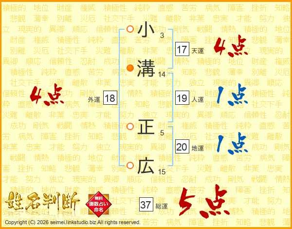 小溝正広さんの総運は37画の5点!