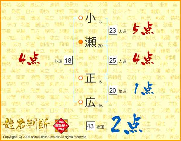 小瀬正広さんの天運は23画の5点!