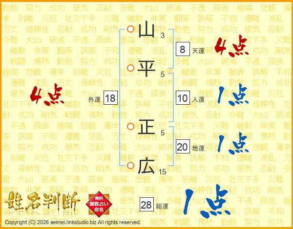 山平正広さんの総運は28画の1点!