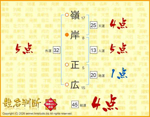 嶺(17画)岸(8画) 正(5画)広(15画)
