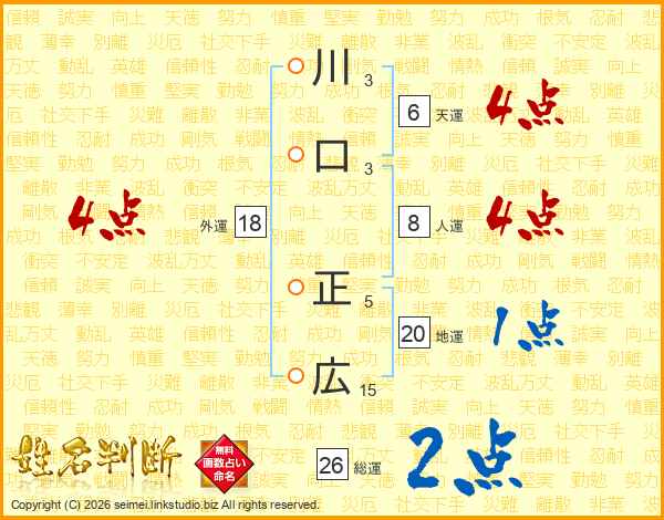 川口正広さんの地運は20画の1点!