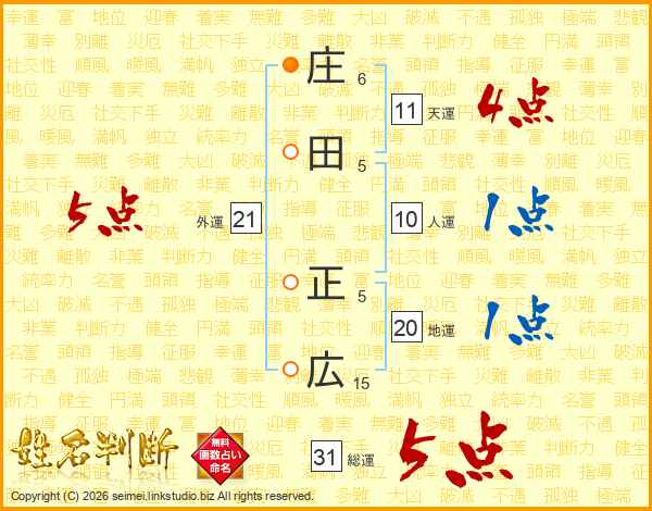 庄田正広さんの総運は31画の5点!