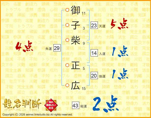 御子柴正広さんの総運は43画の2点!