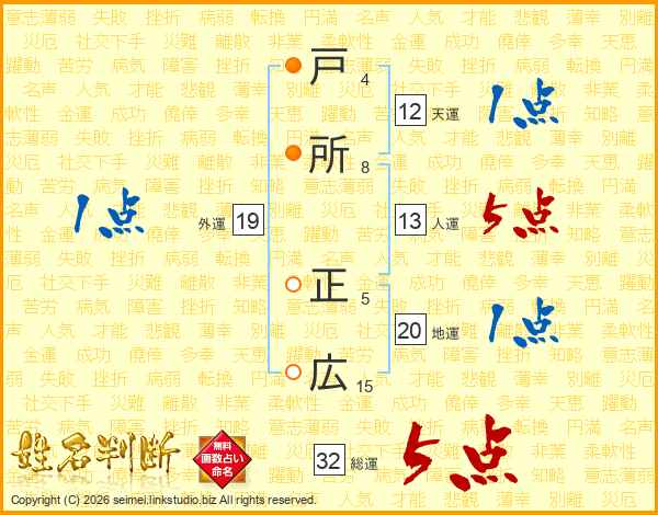 戸所正広さんの総運は32画の5点!