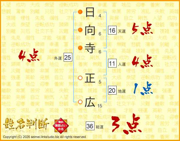 日向寺正広さんの総運は36画の3点!