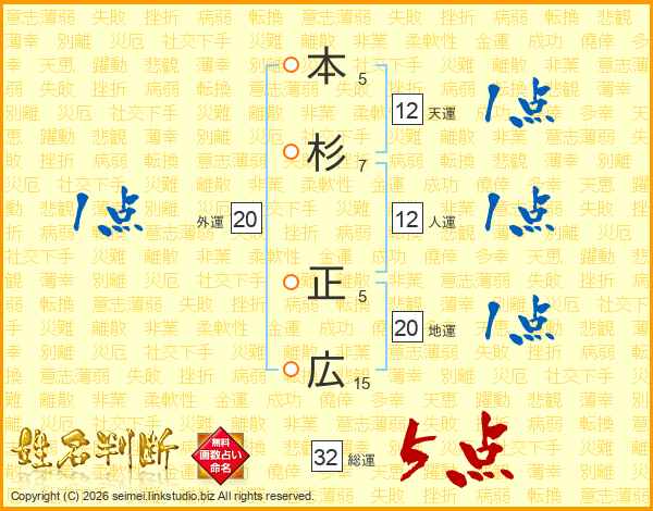 本杉正広さんの総運は32画の5点!