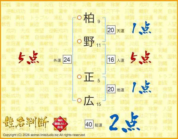 柏野正広さんの天運は20画の1点!