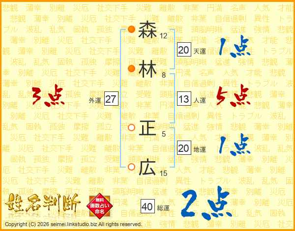 森林正広さんの総運は40画の2点!