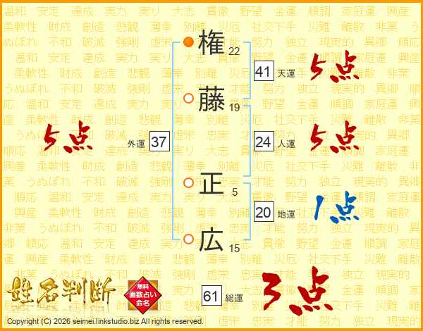 権(22画)藤(19画) 正(5画)広(15画)