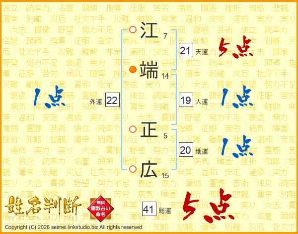 江端正広さんの総運は41画の5点!