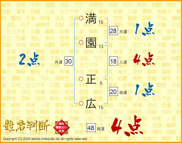 満園正広さんの総運は48画の4点!