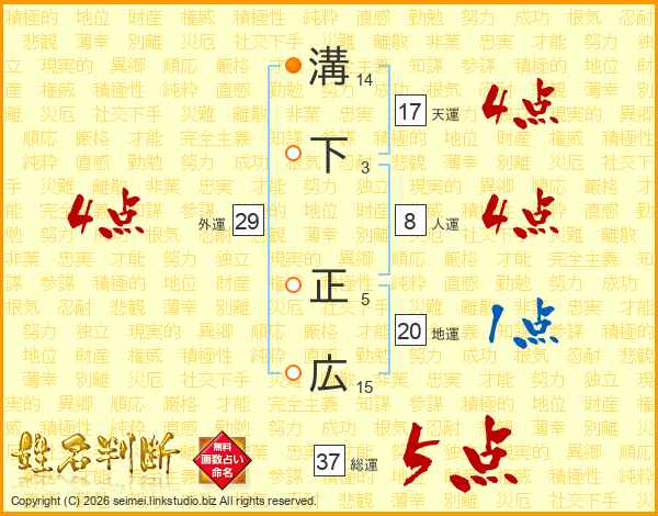 溝下正広さんの総運は37画の5点!