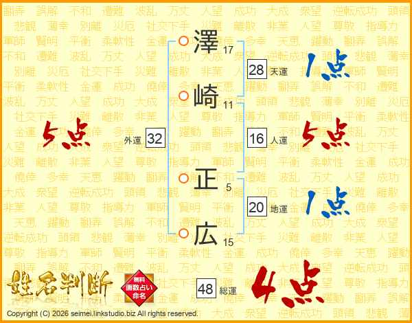 澤崎正広さんの総運は48画の4点!