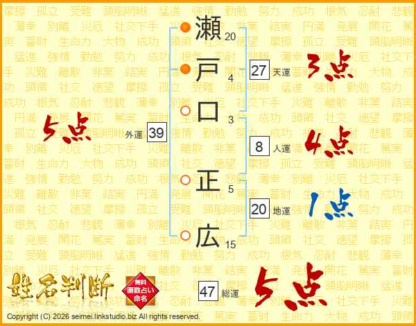 瀬戸口正広さんの総運は47画の5点!