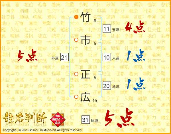 竹市正広さんの総運は31画の5点!