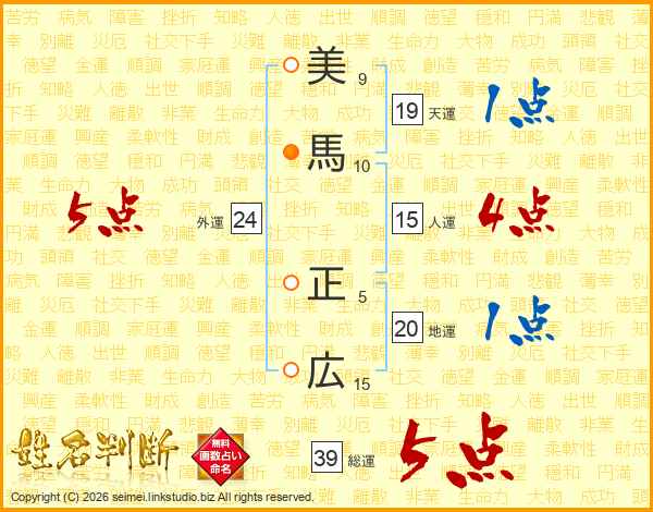 美(9画)馬(10画) 正(5画)広(15画)