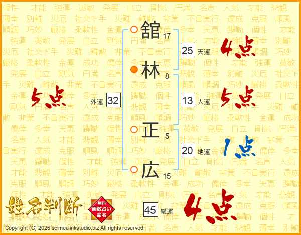 舘林正広さんの総運は45画の4点!