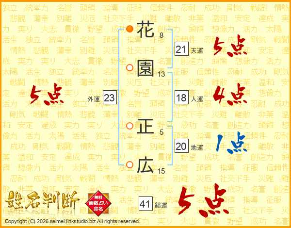 花園正広さんの総運は41画の5点!