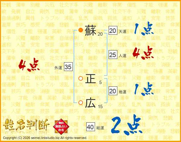 蘇正広さんの人運は25画の4点!