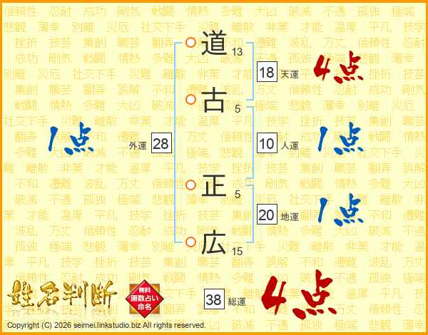道古正広さんの総運は38画の4点!