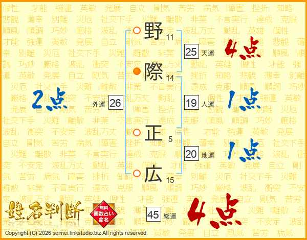 野際正広さんの天運は25画の4点!