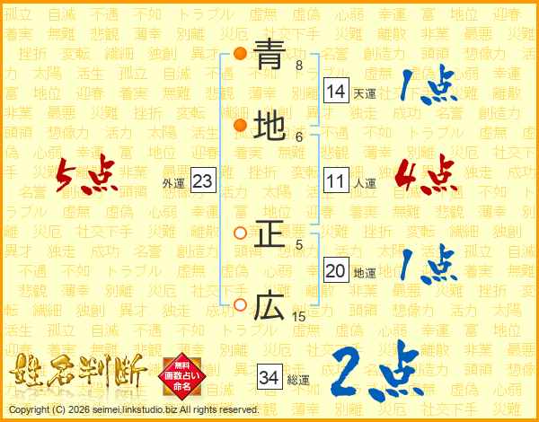 青地正広さんの天運は14画の1点!