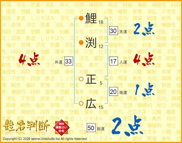 鯉渕正広さんの天運は30画の2点!